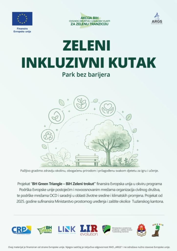 Пројекат „Зелени инклузивни кутак“ реализује се у оквиру иницијативе „BH Green Triangle – БиХ Зелени трокут“, уз финансијску подршку Европске уније у Босни и Херцеговини.