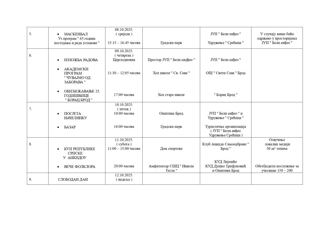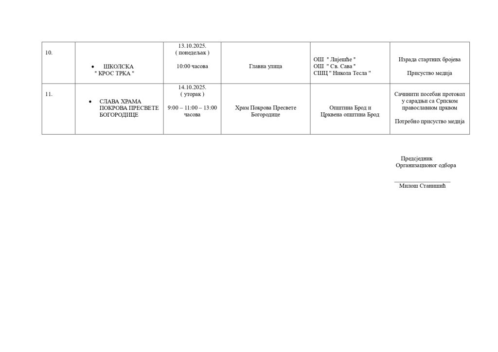 „Централна два догађаја уобичајено су 7. октобар – Дан ослобођења, односно Дан општине Брод и 14. октобар – слава града и слава самог Храма Покрова Пресвете Богородице. Сви остали догађаји су манифестације културног и спортског садржаја који употпуњују слику“, рекао је Станишић.