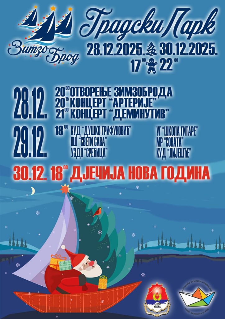 Пето издање „ЗимзоБрода“ започеће свечаним отварањем које је заказано сутра, 28. децембра, у 20:00 часова у Градском парку код спортског центра, а потом слиједи концерт бродског бенда „Артерије“. У празнично уређеном амбијенту посјетиоце од 21:00 час очекује наступ прњаворског хард-рок бенда „Деминутив“.
