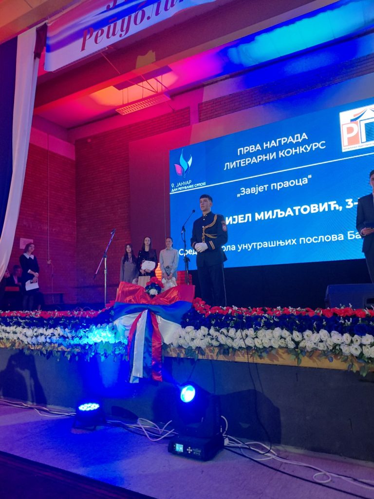 Данијел Миљатовић из Новог Града, ученик Средње школе унутрашњих послова освојио је награду за најбољи литерарни рад, друга је припала Марији Шарић, ученици првог разреда СШЦ „Лакташи“, док је трећу поније Душица Куљић, ученица првог разреда СШЦ „ Голуб Куреш“ из Билеће.
