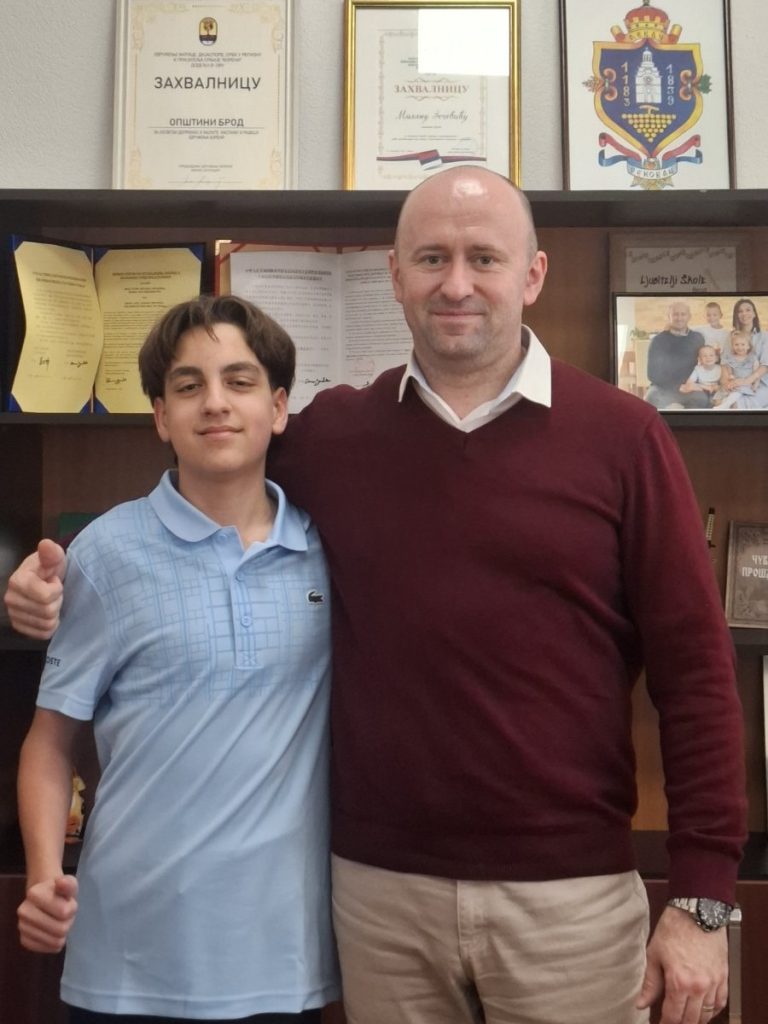 Тим поводом у свом кабинету угостио га је начелник општине Брод Милан Зечевић, који је са младим спортистом разговарао о предстојећем наступу и даљим плановима.