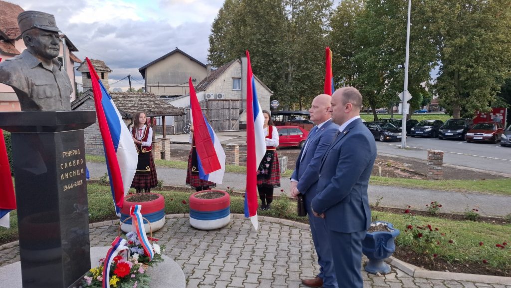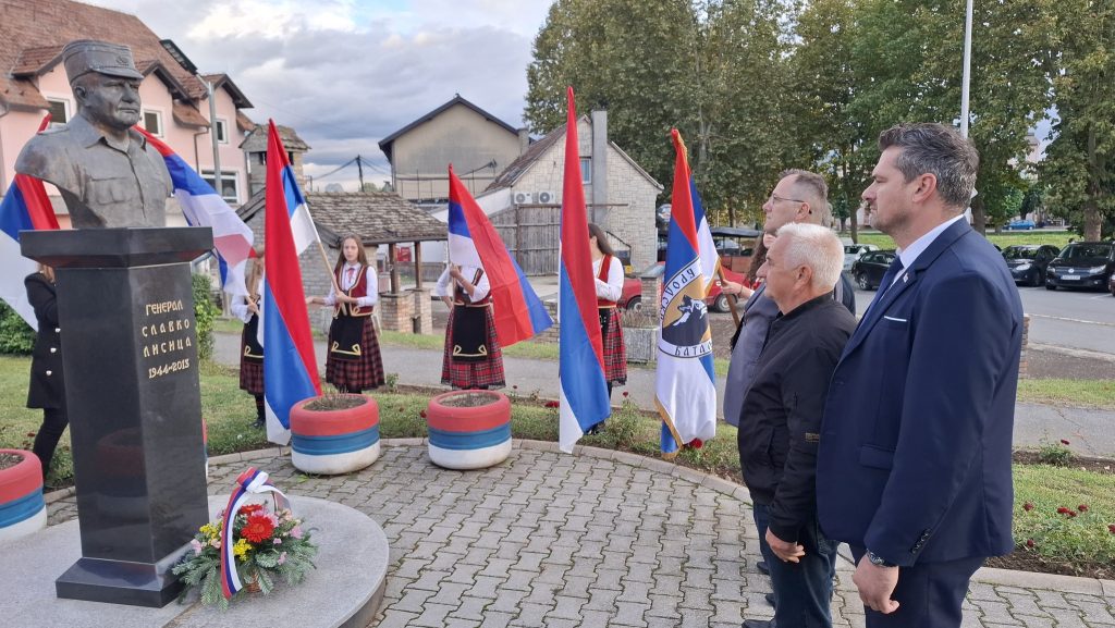 Вијенаци и цвјеће положени су и испред спомен-бисте генералу Славку Лисици.