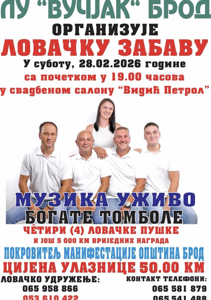 Традиционална Ловачка забава одржаће се у суботу, 28. фебруара 2026. године, са почетком у 18.00 часова. Мјесто окупљања је свечани салон „Видић Петрол“, гдје се очекује незаборавна вече испуњена добром…