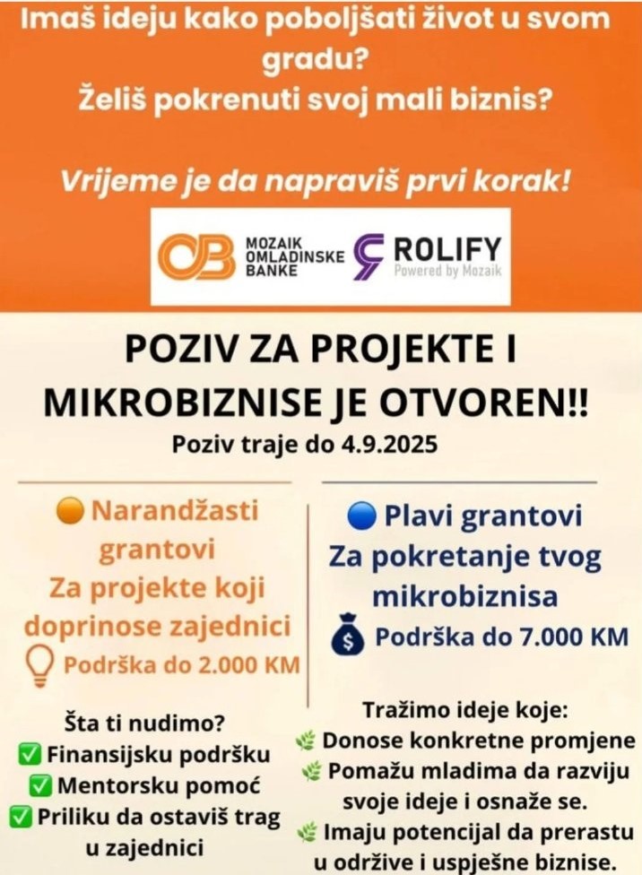 Омладинска банка Брод позива све младе који имају идеје, енергију и жељу да унаприједе своју заједницу или започну властити пословни пут, да искористе ову прилику.